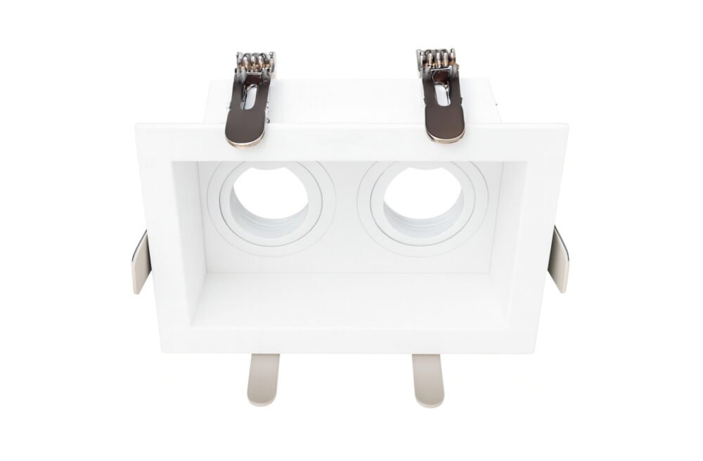 Designed for dual-lamp configurations, this premium Aluminum Frame provides a sophisticated recessed lighting solution. Finished in a clean Architectural White, the housing is engineered for compatibility with both GU10 lamps and LED modules. Its high-grade aluminum construction offers a seamless aesthetic and excellent durability for modern residential and commercial ceilings.
