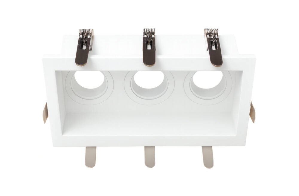 Engineered for triple-lamp configurations, this premium Aluminum Frame offers an expansive recessed lighting solution for high-end interiors. Finished in a clean Architectural White, the housing is fully compatible with GU10 lamps or LED modules. Its robust aluminum construction ensures a precise, seamless fit and long-lasting durability in modern commercial or residential ceilings