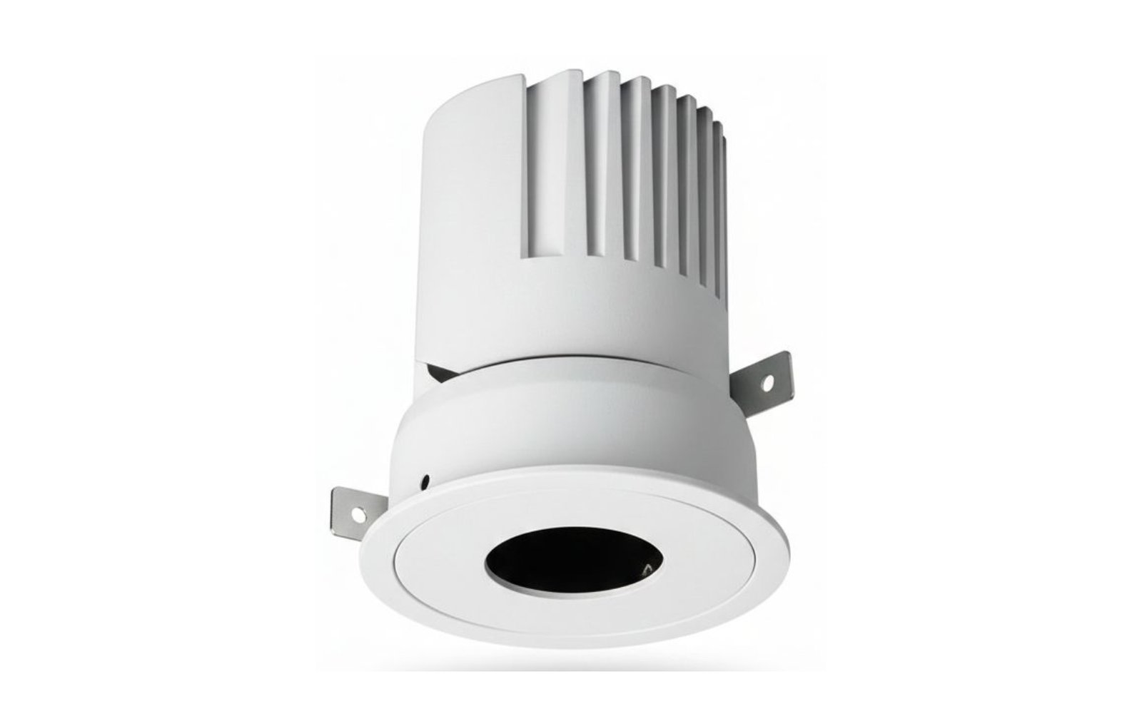 A high-output, deep-recessed architectural spotlight designed for high-contrast accenting. Constructed from die-cast aluminum, it features a 18° narrow beam optical lens for precise light control. The design combines a White trim with an integrated Matt Black heatsink for optimized thermal dissipation and minimal glare.